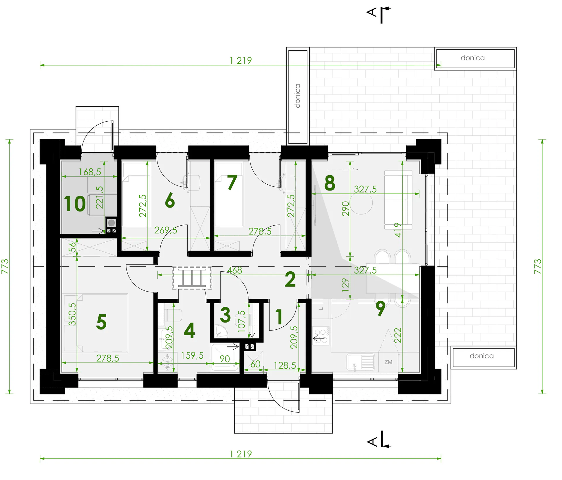 Stellen Sie sich einen Morgen in einem geräumigen Wohnzimmer vor, wo die Sonnenstrahlen durch die großen Fenster scheinen und der Duft von frischem Kaffee sich mit der Stille des umliegenden Gartens vermischt. Hier hat jeder Moment seinen Platz – das Familienfrühstück, ein fauler Nachmittag mit einem Buch oder abendliche Gespräche am gemeinsamen Tisch.
